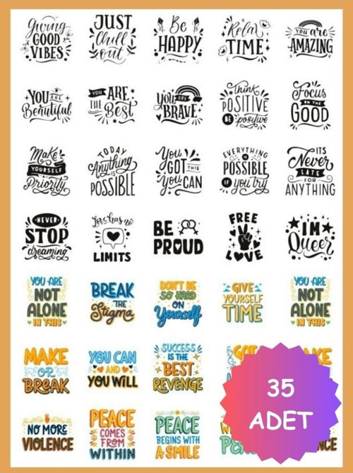 Quun Motivasyon Yazı Sticker Set - Planlayıcı, Ajanda, Bullet Journal İçin Renkli Etiket Çıkartma Kitabı