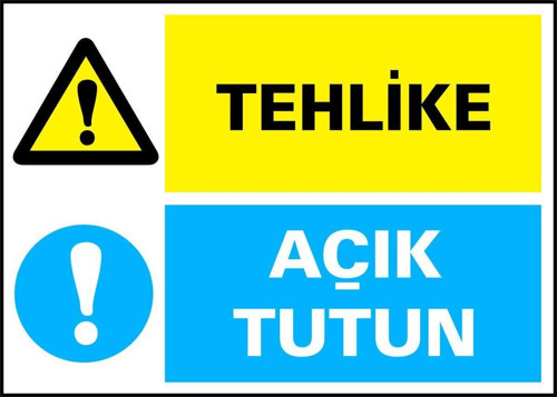 Tehlike / Açık Tutun Kendinden Yapışkanlı Etiket 17,5 X 25 Cm