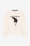 Leopar Baskılı Sloganlı Oversize Sweatshirt Ekru
