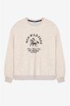Yuvarlak yaka, ön kısmı yazı nakışlı ve at baskı detaylı, uzun kollu, ribanalı manşetli, rahat kesim oversize sweatshirt.