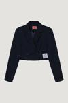 Özellikle biyeli etiket detayı, cekete modern ve şık bir dokunuş katmaktadır.
