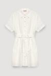 İçi kendi renginden astarlı, kısa kollu, fisto detaylı, düğme kapamalı, kuşak kemer aksesuarlı, mini boy gömlek elbise.