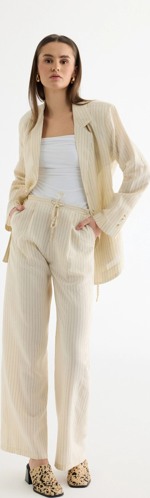 Çizgili Bağcıklı Bol Paça Pantolon Ekru