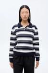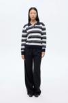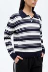 Çizgili tasarımlı, polo yaka, düğmeli, uzun kollu, manşet ve etek ucu ribanalı, regular fit triko.
