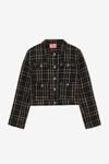 İçi astarlı, vatkalı omuz detaylı, çift cepli gold aksesuarlı, uzun kol, gömlek yaka, önü gold düğme kapamalı, kısa tüvit ceket.
