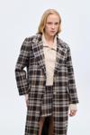 İçİ astarlı, ekose desenlİ, cep kapak detaylı, kruvaze yakalı, uzun kollu, arkası yırtmaç detaylı, düğme kapamalı, oversİze kaşe kaban.