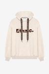 Önü yazı nakışlı, uzun kollu, kordonlu kapüşonlu, ribanalı manşet detaylı, rahat kalıp oversize sweatshirt.
