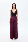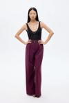 Yüksek belli, cepli,önü pileli, kemer detaylı pantolon.