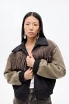 İçi kendi renginden astarlı, önü fermuarlı, püsküllü, uzun kollu, ekose ve kadife match detaylı, yandan cepli ceket.