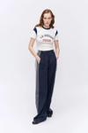 Yanı match şerit detaylı, yüksek bel, bol paça pantolon.