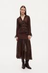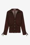 Yanda büzgü detaylı lastikli, gömlek yaka, düğme kapamalı, bilekleri bağcıklı, transparan görünümde, kırışık dokulu kumaştan, uzun kollu gömlek.
