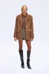 İçİ kendİ rengİnden astarlı, kruvaze yaka, uzun kollu, çİft cep kapaklı, düğme kapamalı, oversİze blazer ceket.