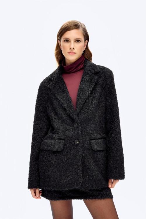 İçİ kendİ rengİnden astarlı, kruvaze yaka, uzun kollu, çİft cep kapaklı, düğme kapamalı, oversİze blazer ceket.