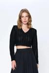 V yaka, uzun kollu, vatkalı, crop kesim örgü triko.