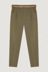 Kemer aksesuar detaylı, yüksek bel pens detaylı, fermuarlı ve kanca kapamalı, çift cepli, arkası cep kapaklı, düz paça pantolon.