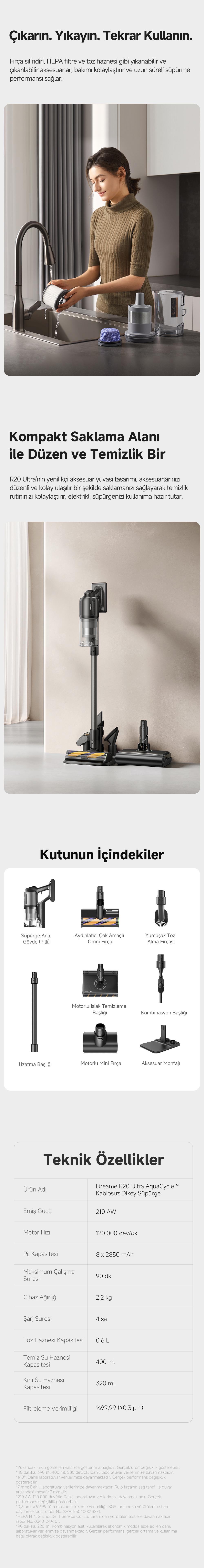 R20 Ultra Aquacycle Kablosuz Dikey Süpürge
