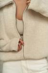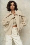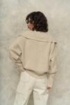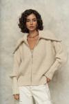Geniş ve rahat formda, katlanabilir geniş yakalı, kol ucu dar ve lastik örgülü, dökümlü hırka.