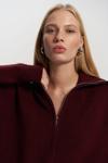 Geniş ve rahat formda, katlanabilir geniş yakalı, kol ucu dar ve lastik örgülü, dökümlü hırka.