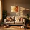 Bu avizenin tasarımı, rafya iplerinin dikkatle sarılması ve şekillendirilmesiyle elde edilen zarif bir siluete sahiptir. Her detay, avizenin şıklığını ve zarafetini artırarak mekânda sofistike bir hava yaratır. Dayanıklı ve çevre dostu rafya malzemesi, sadece estetik açıdan değil, aynı zamanda uzun ömürlü kullanım açısından da oldukça etkili bir seçimdir.