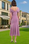 Ersefa Rahat Asimetrik Yaka Kısa Kollu Örme Elbise Premium Kalite Yüksek Kalite Premium Kalite Rahat Ve Şık