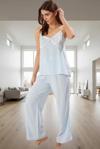 Ev konforunu bir üst seviyeye taşıyacak bu 2'li pijama takımı, yumuşak dokusu ve şık tasarımıyla dikkatleri üzerine çekiyor. %100 Viskoz poplin kumaştan üretilen takım, nefes alabilir özelliğiyle gün boyu rahatlık sunuyor. İnce askılı ve V yaka tasarımıyla feminen bir görünüm sergilerken, regular kalıp vücut hatlarınıza kusursuz uyum sağlıyor. Normal bel ve boru paça detayları ise konforlu bir kullanım deneyimi sunuyor. Mavi rengi ve şık danteliyle evde geçirdiğiniz zamanı daha keyifli hale getirmek için tasarlandı. İlkbahar ve sonbahar aylarında ideal olan bu pijama takımı, T52 yıkama talimatına uygun olarak kolayca temizlenebilir.