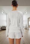 3 parçadan oluşan bu takım; kısa kollu gömlek, şort ve hırka içerir. 38-46 beden aralığında mevcuttur ve tüm vücut tiplerine uygundur. Yaz aylarına uygun, hafif ve nefes alabilir yapısıyla serin kalmanıza yardımcı olur. Bu pijama takımı ile evinizde rahat ve şık bir şekilde vakit geçirebilirsiniz. Terlik veya ev terlikleriyle kombinleyerek şık bir görünüm elde edebilirsiniz. Bu pijama takımıyla evinizde her an rahat ve şık hissedeceksiniz.