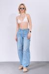Maule Rahat Kesim %100 Pamuk Baggy Jean – Yanda Toka ve Apolet Detaylı Fermuarlı Kadın Pantolon @Katanya