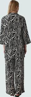 Polyester kumaşın dayanıklılığı ve kolay bakımıyla zamandan tasarruf edersiniz. Leopar deseni, tarzınıza modern bir dokunuş katar. V yaka detayı ve cep detayları ise hem şık hem de pratik bir kullanım sağlar. Geniş paçaları sayesinde rahat hareket edebilir, casual ortamlarda kendinizi özgür hissedebilirsiniz.