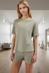 Bu pijama takımını, kaliteli malzemeleri ve üstün konforuyla diğerlerinden ayıran özellikler; yumuşak dokusu, nefes alabilirliği ve vücuda tam oturan regular kalıbıdır. Kısa kollu tişört ve boru paça şort, yaz sıcağında serin ve rahat kalmanızı sağlar. Normal bel şort rahat hareket özgürlüğü sunarken, bisiklet yakası rahatlığı tamamlar. Üzerinde yer alan 'The Weekend' sloganı ve kalp nakışı, bu şık parçaya özel ve eğlenceli bir hava katmaktadır.