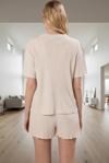 Bu pijama takımını, kaliteli malzemeleri ve üstün konforuyla diğerlerinden ayıran özellikler; yumuşak dokusu, nefes alabilirliği ve vücuda tam oturan regular kalıbıdır. Kısa kollu tişört ve boru paça şort, yaz sıcağında serin ve rahat kalmanızı sağlar. Normal bel şort rahat hareket özgürlüğü sunarken, bisiklet yakası rahatlığı tamamlar. Üzerinde yer alan 'The Weekend' sloganı ve kalp nakışı, bu şık parçaya özel ve eğlenceli bir hava katmaktadır.