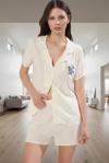 Materyal Bileşeni: 100% Viskoz; Kumaş Tipi: Dokuma; Dokuma Tipi: Shally; Kol Boyu: Kısa; Kol Tipi: Standart Kol; Yaka Tipi: Gömlek Yaka; Renk: Ekru; Desen: Düz; Ürün Detayı: Nakışlı; Koleksiyon: Homewear; Alt-Üst Takım: Gömlek-Şort; Kalıp: Regular; Paça Tipi: Boru Paça; Paket İçeriği: 2li; Boy: Regular; Yıkama Talimatı: T52; Sezon: Yaz; Menşei: TR