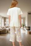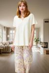 Bu 2'li takım; kısa kollu tişört ve kapri pantolonu ile tamamlanıyor. 36-44 beden aralığında mevcuttur. Rahat uyku, evde dinlenme veya misafir ağırlama gibi durumlar için idealdir. Tüm sezonlar boyunca kullanılabilir. Kolay bakımıyla zamanınızdan tasarruf edersiniz. Kendinizi şımartın ve bu konforlu pijama takımıyla evinizde huzur bulun.