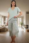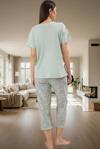 Bu 2'li takım; kısa kollu tişört ve kapri pantolonu ile tamamlanıyor. 36-44 beden aralığında mevcuttur. Rahat uyku, evde dinlenme veya misafir ağırlama gibi durumlar için idealdir. Tüm sezonlar boyunca kullanılabilir. Kolay bakımıyla zamanınızdan tasarruf edersiniz. Kendinizi şımartın ve bu konforlu pijama takımıyla evinizde huzur bulun.