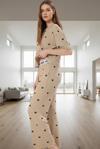 Ev konforunu yeniden tanımlayın! Bu 2 parçalı pijama takımı, yumuşak örme kumaşı ve şık kalp deseniyle sizi büyüleyecek. Rahat bir uyku için ideal olan bu takım, gün boyu süren konforu garanti eder. Kısa kollu üst ve uzun paçalı pantolon, her vücut tipine mükemmel uyum sağlayan regular kalıbıyla tasarlanmıştır. Normal bel yapısıyla gün boyu rahatlık sunar, sıkma hissi yaratmaz. Nefes alabilir kumaşıyla sıcak yaz gecelerinde serin, serin sonbahar gecelerinde ise sıcak tutar.