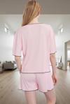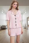 Premium kalite kaşkorse örme kumaş, gün boyu konfor sunar. Nefes alabilen yapısı sayesinde terletmez ve serin kalmanıza yardımcı olur. Regular kalıp, vücut hatlarınıza mükemmel şekilde oturur ve hareket özgürlüğünü kısıtlamaz. Kısa kollu üst ve şort alt, mükemmel bir yaz kombinidir. Kurdele fiyonklar ve baby overlok dikişleri, pijama takımına şık bir detay katıyor.