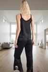 Evde rahatlık ve şıklığı bir arada arayanlar için mükemmel bir seçim! Bu iki parçalı pijama takımı, yumuşak saten dokusuyla gün boyu konfor sunuyor. Siyah rengi ve zarif dantel detaylarıyla, hem rahat hem de şık bir görünüm elde edebilirsiniz. Kolsuz üst ve rahat kapri alt ile tasarlanan takım, regular kalıbıyla her vücut tipine uyum sağlıyor. Normal bel yapısıyla da gün boyu rahat hareket etmenizi sağlıyor. Polyester kumaştan üretilen takım, kolay bakım için makinede 60 derecede yıkanabiliyor. Hem evde dinlenirken hem de uyurken konfor ve şıklığı aynı anda deneyimleyin!