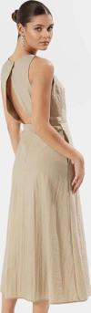 Yüksek kaliteli polyester kumaş, dayanıklı ve uzun ömürlü kullanım sunar. Makinede yıkanabilir özelliği sayesinde bakımı oldukça kolaydır. A-line kalıbı, vücut hatlarınızı güzel bir şekilde ortaya koyarken, aynı zamanda rahat bir hareket özgürlüğü sunar. Kolsuz tasarımı sayesinde sıcak havalarda serin kalırken, şık bisiklet yakası ile her zaman zarif görünmenizi sağlar. Midi boyu ile hem günlük hem de özel davetlerde şık bir görünüm elde etmenizi mümkün kılar.