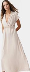 Bu bej elbise, günlük yaşamınızda hem rahatlık hem de şıklık arayanlar için mükemmel bir seçenektir. Nefes alabilen Aerobin dokuma kumaşıyla üretilen elbise, yaz aylarında serin kalmanıza yardımcı olurken, A-line kalıbıyla da vücudunuza kusursuz bir şekilde oturur. V yaka detayı ve kısa kolları ile modern ve zarif bir görünüm sunar. Maxi boyu ise size hareket özgürlüğü sağlar.