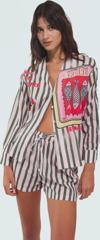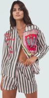 Yaz aylarının sıcak günlerinde hem şık hem de rahat olmak mı istiyorsunuz? Bu balık desenli, pamuk vual kumaştan üretilen plaj takımı tam size göre! V yakası ve kısa kollarıyla serinlemenizi sağlarken, rahat kalıbıyla gün boyu konfor sunar. 96% pamuk ve 4% elastan karışımı, nefes alabilir ve yumuşak bir his sağlar. Dokuma vual kumaşı ile hafif ve ince yapısı, yaz sıcağında idealdir. Şık çizgili tasarımı ve eğlenceli balık deseniyle, plaj stilinize modern ve canlı bir dokunuş katacaktır.