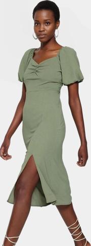 Apsen Kadın Haki Bağlama Kare Yaka Kol Detaylı Yeni Sezon Elbise 4368/100 - Image 1
