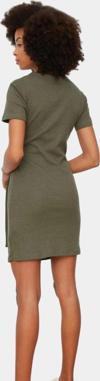 Elbisenin bodycon kalıbı, vücut hatlarınızı zarifçe sararak modern ve feminen bir görünüm sunar. Baskısız düz tasarımı, her türlü aksesuarla kolayca kombinlenebilir. Orta kalınlığı sayesinde yaz aylarında serin tutarken, mevsim geçişlerinde de rahatlıkla giyilebilir. Cepsiz tasarımı, minimalist bir görünüm sunar.