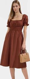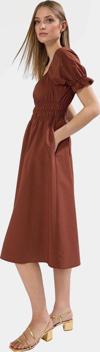Ersefa Astarlı Şifon Elbise Skater Midi Büzgülü Kol Dokuma Kumaş Günlük Kullanım İçin