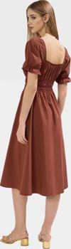 Astarlı Şifon Elbise Skater Midi Büzgülü Kol Dokuma Kumaş Günlük Kullanım İçin - Image 1