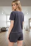 Bu pijama takımı, sadece rahatlık değil, aynı zamanda şıklık da sunuyor. Gri rengi, her zevke hitap ederken, dantel detayları zarafeti tamamlıyor. V yaka detayı ve kısa kollarıyla yaz aylarında serin kalmanızı sağlar. Regular fit kalıbıyla her vücut tipine uyum sağlar ve gün boyu rahat hissetmenizi garantiler.