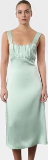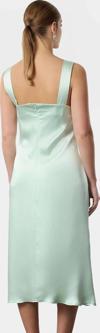 Günlük yaşamınızın rahatlığını ve özel günlerinizin şıklığını bir araya getiren mükemmel bir elbise arıyorsanız, işte karşınızda! Bu mint yeşil saten midi elbise, hem rahatlığı hem de şıklığı bir arada sunuyor. Yumuşak ve parlak saten dokuma kumaş, teninize mükemmel bir uyum sağlayarak size eşsiz bir konfor sunar. Askılı tasarımı ve kare yakasıyla hem modern hem de zamansız bir görünüm elde edersiniz. Vücudu saran bodycon kesimiyle de feminen hatlarınızı ön plana çıkarır.