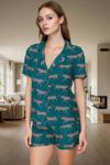 Yumuşak ve nefes alan viskon kumaş, gün boyu konfor sunarken, animal desenli tasarımıyla tarzınızı yansıtabilirsiniz. Düğmeli gömlek detayı, kolayca giyip çıkarabilmenizi sağlarken, regular kalıp her vücut tipine uygundur. Kısa kollu ve kısa paçalı tasarımı, yaz sıcaklarında serin kalmanız için idealdir. Metraj baskı tekniğiyle uygulanan desen, uzun süreli kullanımda solma yapmaz.