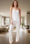 Evde rahatlığın ve şıklığın tadını çıkarın! Bu pijama takımı, %96 viskoz ve %4 elastan karışımı yumuşak, nefes alan bir kumaştan üretilmiştir. Çiçek desenli tasarımıyla göz alıcı bir görünüm sunarken, ince askılı üstü ve geniş paçalı altıyla da konforu bir araya getiriyor. Normal bel yapısı ve regular kalıbıyla her vücut tipine uyum sağlayan bu pijama takımı, günlük kullanım için mükemmel bir seçim. İlkbahar ve sonbahar aylarında ideal kullanım sıcaklığı sunar.
