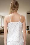 Bu 2'li takım; ince askılı, çiçek desenli üst ve normal bel, geniş paçalı alt parçadan oluşmaktadır. Regular kalıbı, rahat bir uyum sağlar. Evde, hafta sonları veya misafirlerinizdeyken rahatlıkla kullanabileceğiniz çok yönlü bir pijama takımıdır. Üstelik, T52 yıkama talimatına uygun olarak kolayca temizleyebilirsiniz. Evinizin konforunu ve şıklığını bir araya getiren bu pijama takımını kaçırmayın!