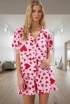 Yaz aylarının sıcak akşamlarında kendinizi evinizde rahat hissetmenizi sağlayacak mükemmel bir seçim olan bu pijama takımı, yumuşak viskoz kumaştan üretilmiştir. Pembe renginin ve sevimli kalpli desenlerinin şıklığı, rahatlığı ile buluşuyor. Kısa kollu gömlek ve rahat şorttan oluşan takım, Regular kalıbıyla her vücut tipine mükemmel uyum sağlar. Şortun fırfırlı paçası ise takıma feminen bir dokunuş katıyor.
