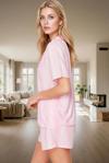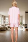 Bu 2'li pijama takımı, kısa kollu gömlek ve şorttan oluşur. Yaz ayları için ideal olan bu takım, evinizde rahatlatıcı ve şık bir deneyim yaşamanızı sağlar. Hem uyku zamanınızda hem de evde vakit geçirirken tercih edebilirsiniz. Pembe ve beyaz çizgilerin uyumu, modern ve zarif bir görünüm sunar. Doğal viskoz kumaşı ile cildinize zarar vermeden gün boyu konfor yaşayabilirsiniz.
